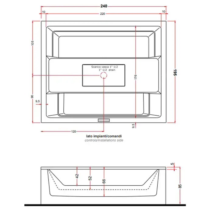 GRUPPO TREESSE REST Минибассейн 2400x1950х850 мм., хромотерапия 1, озон. дезинф. внешняя панель VTR, автонаполнение и дренаж, нагрев3KWцвет белый