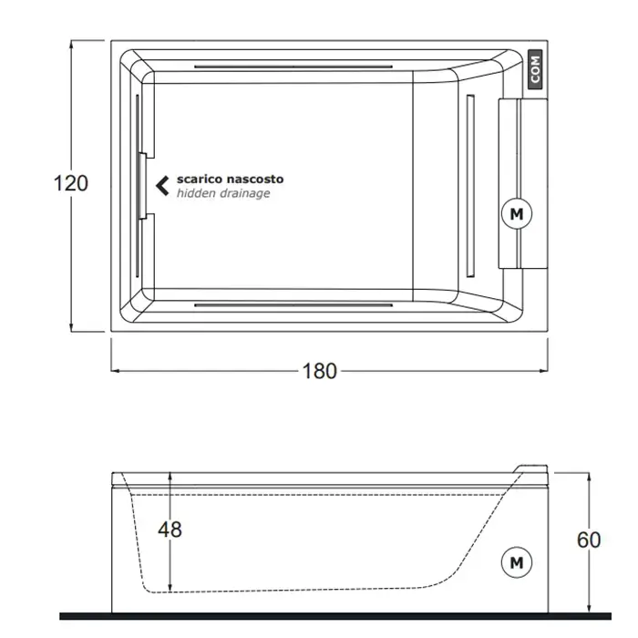 Treesse Soul Ванна 180x120x60h см.с гидро и аэро/м эл. упр-е и дренаж, дезинфекция, 18 форсунок, подушка, установка к стене, 560л,белый