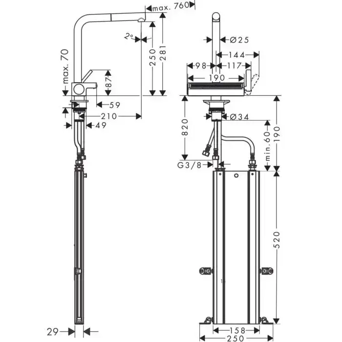 HG Aquno Select M81 Кухонный смеситель однорычажный, 250, с вытяжным душем, 2jet, sBox, цвет хром