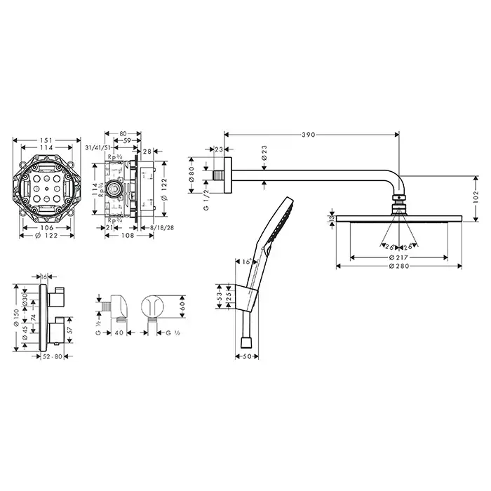 HG Croma Душ. система hansgrohe Croma 280 1jet скрытого монтажа, с термостатом Ecostat S, мат черный матовый