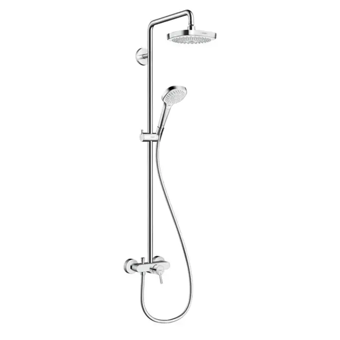 HG Croma Select E Душевая система Showerpipe: верх.душ 180 2jet, ручн.душ, шланг, смеситель для душа, цвет: белый/хром