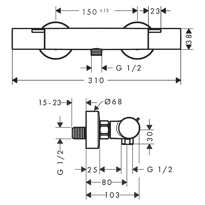 Hansgrohe Ecostat S Смеситель для душа, настенный, термостатический, цвет: белый матовый