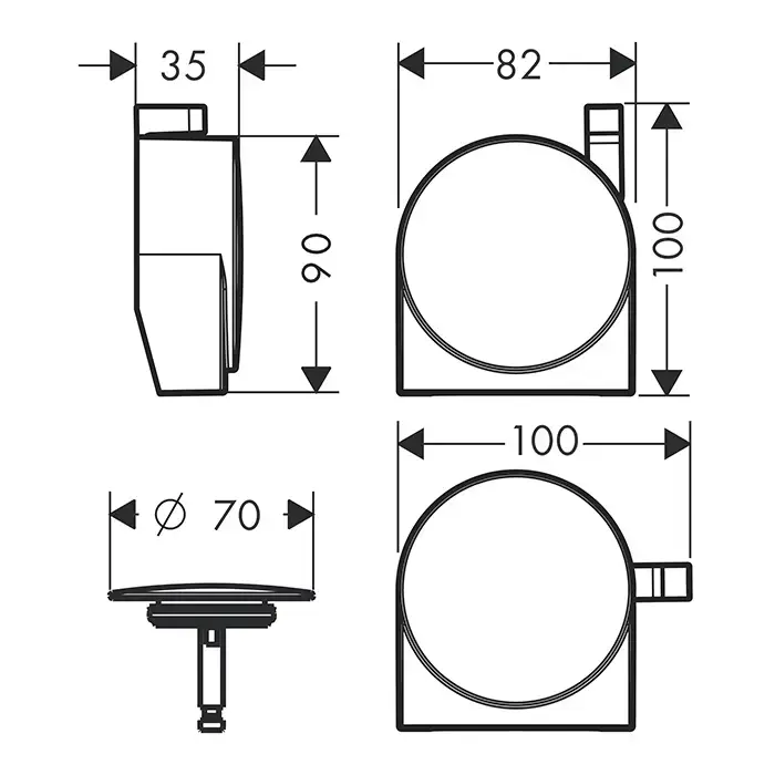 Hansgrohe EXAFILL S Слив-перелив для нестандартных ванн, с функцией наполнения- подключение слева DN20, скрытая часть, с сифоном (БЕЗ внешних частей 58117)