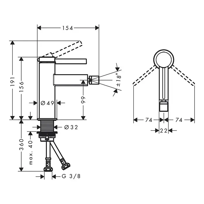 HANSGROHE FINORIS Смеситель для биде на 1 отверстие, однорычажный, с донным клапаном, цвет хром