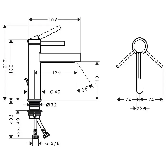 HG Finoris Смеситель для раковины, однорычажный, 110 со сливным гарнитуром, цвет белый матовый