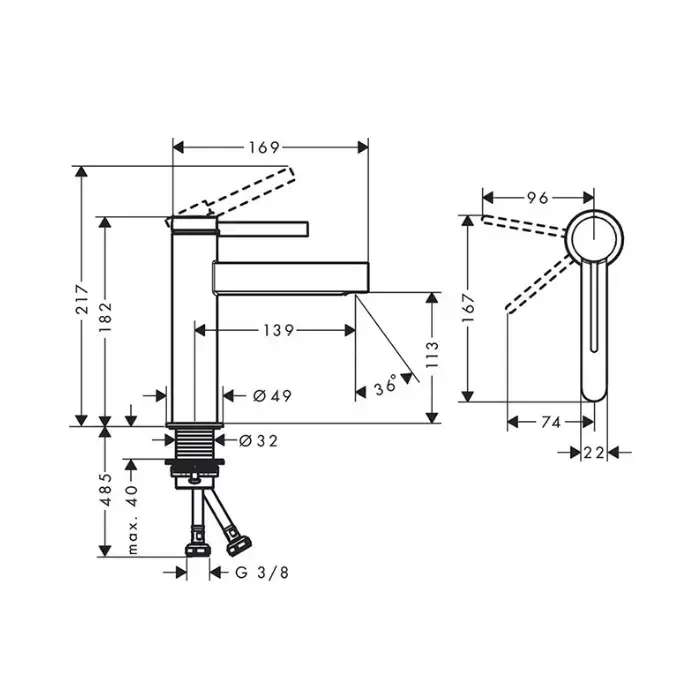 HG Finoris Смеситель для раковины, однорычажный, 110 CoolStart, со сливным клапаном Push-Open, хром