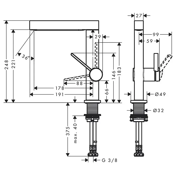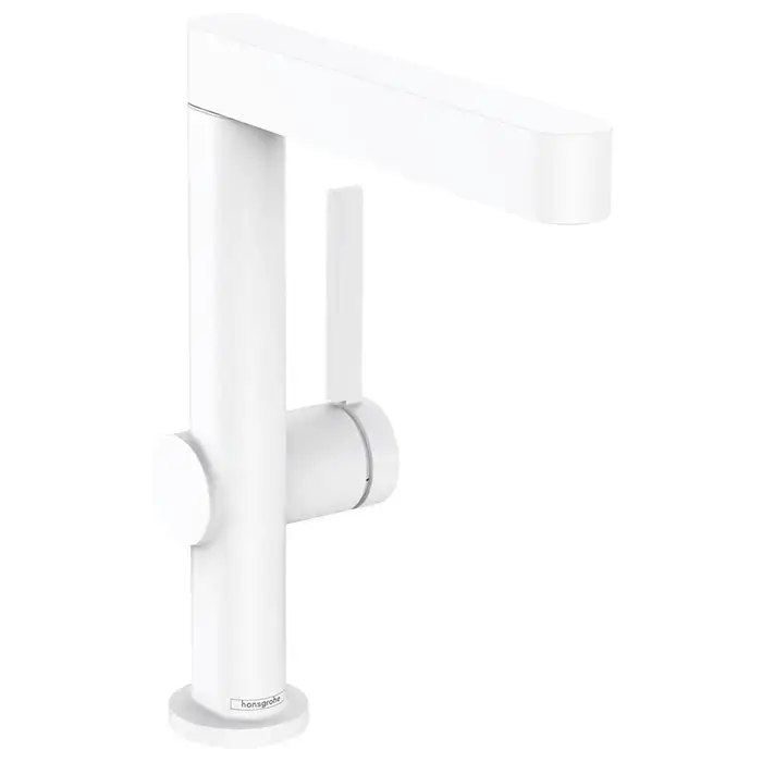 HANSGROHE FINORIS Смеситель для раковины на 1 отверстие, однорычажный, с поворотным изливом, с донным клапаном, цвет белый матовый