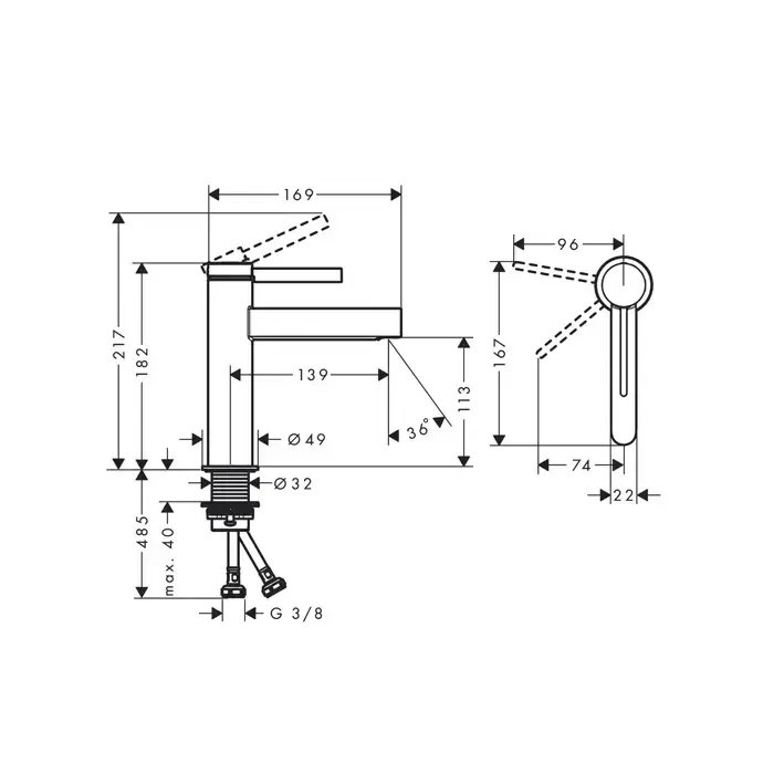 HANSGROHE FINORIS Смеситель для раковины на 1 отверстие, однорычажный, с донным клапаном, цвет черный матовый