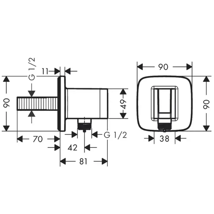 Hansgrohe FixFit Q Шланговое подсоединение с держателем ручного душа, настенный, цвет: черный матовый
