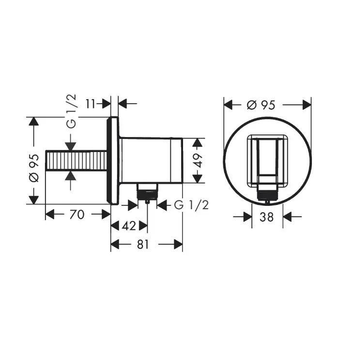 Hansgrohe Fixfit S Шланговое подсоединение, 1/2", цвет: чёрный матовый