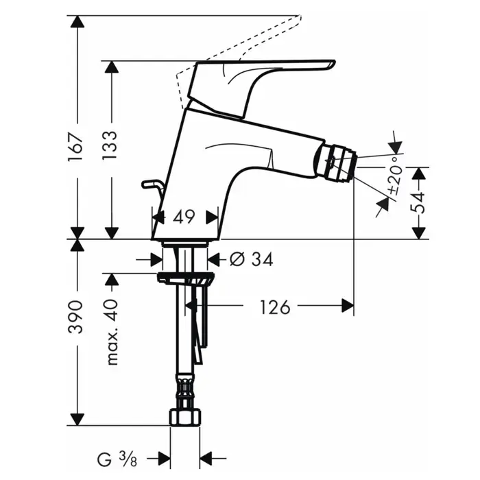 HG Focus Смеситель для биде с донным клапаном, на 1 отв., излив 126мм, h54мм, цвет: хром