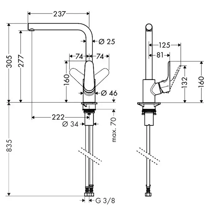 HG Focus Смеситель для кухни, на 1 отв., поворотный излив 222мм, h217мм, 1jet, цвет: хром