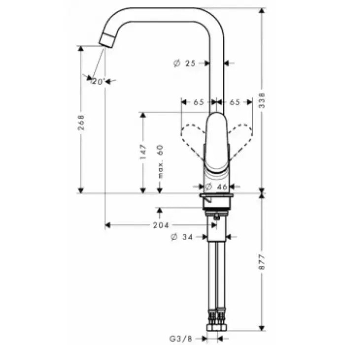 HG Focus Смеситель для кухни, на 1 отв., поворотный излив 204мм, h268мм, 1jet, цвет: под сталь
