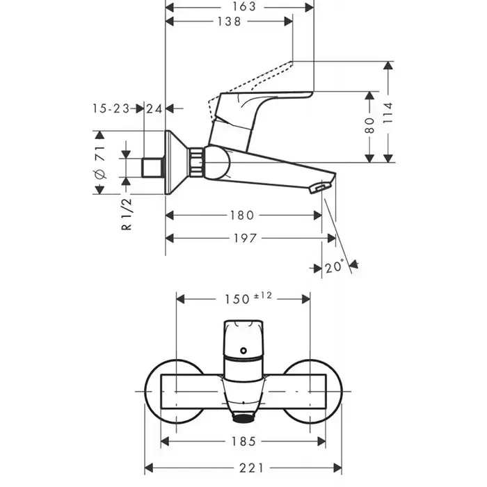 HG Focus Смеситель для раковины, настенный , излив 180мм, цвет: хром