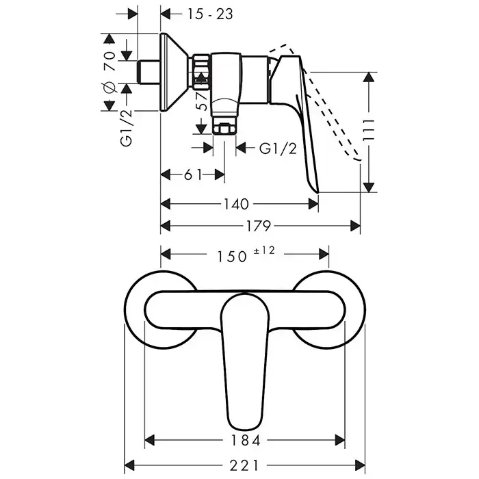 HG Logis E Смеситель для душа, настенный, цвет: хром