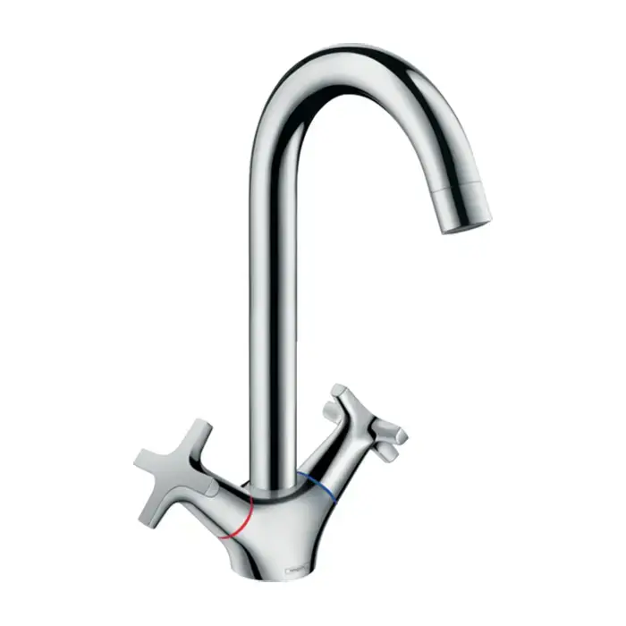HG Logis Смеситель для кухни на 1 отв, поворотный излив 156мм, h212мм, с 2 ручками "+", цвет: хром