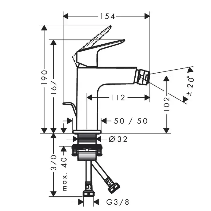 HG Logis Смеситель для биде, однорычажный 110 Fine, со сливным гарнитуром, хром