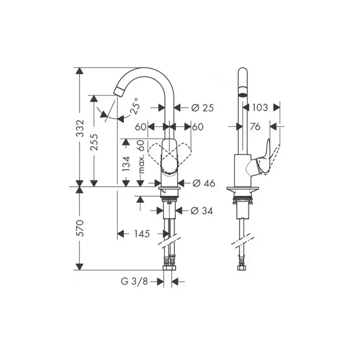 HG Logis M31 Кухонный смеситель на 1 отв, однорычажный, поворотный излив 145мм, h255мм, 1jet, цвет: хром