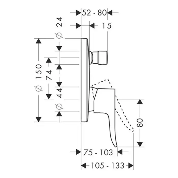 HG Metris Смеситель для ванны, встраиваемый, переключатель вакумный, внешняя часть, цвет: хром