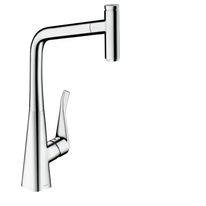 Hansgrohe Metris Select M71 Смеситель для кухни на 1 отв, поворотный и выдвижной излив 1jet, кнопка вкл/выкл воды, цвет: хром