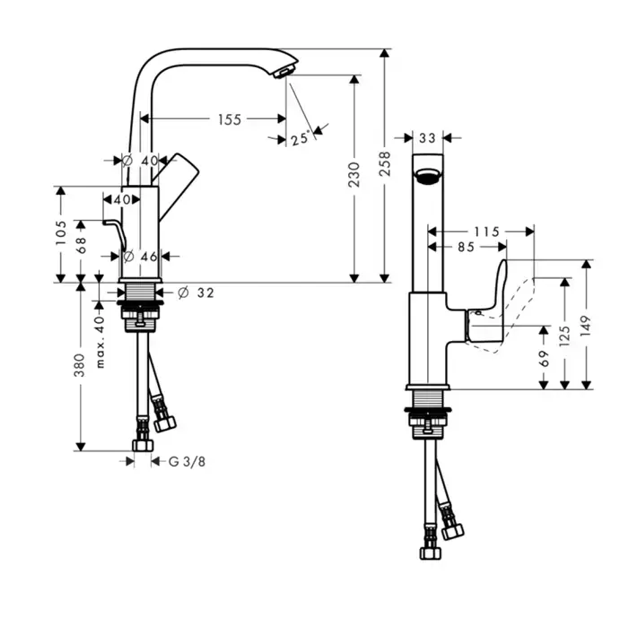 HG Metris Смеситель для раковины, на 1 отв., поворотный излив 155мм, h230мм, цвет: хром