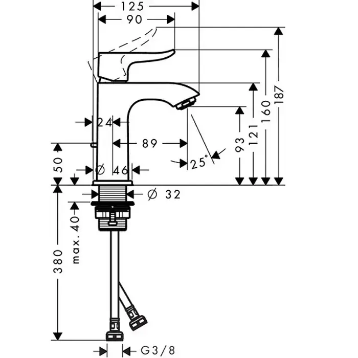HG Metris Смеситель для раковины с донным клапаном, на 1 отв., излив 89мм, h93мм, цвет: хром