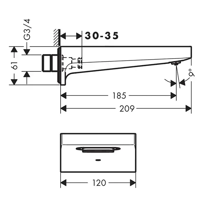 HG Metropol Излив на ванну 185мм, настенный, цвет: золото