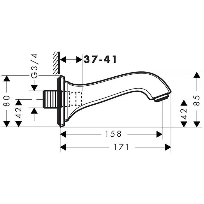 Hansgrohe Metropol Настенный излив на ванну, 15.9см., хром