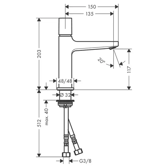 HG Metropol Смеситель для раковины 110, на 1 отв, с донным клапаном Push-Open, излив 135мм, h117мм, рук. Select, цвет: хром