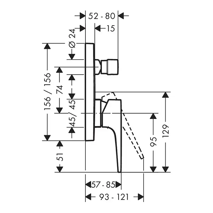 HG Metropol Встраиваемый смеситель для ванны с переключателем (внешняя часть), цвет: белый матовый