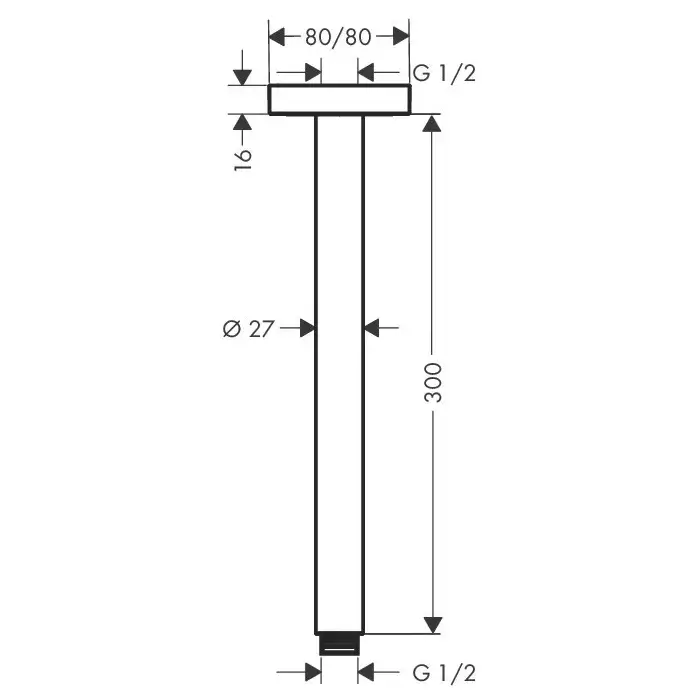 HG Потолочное подсоединение S, 300 мм, G1/2, цвет: хром