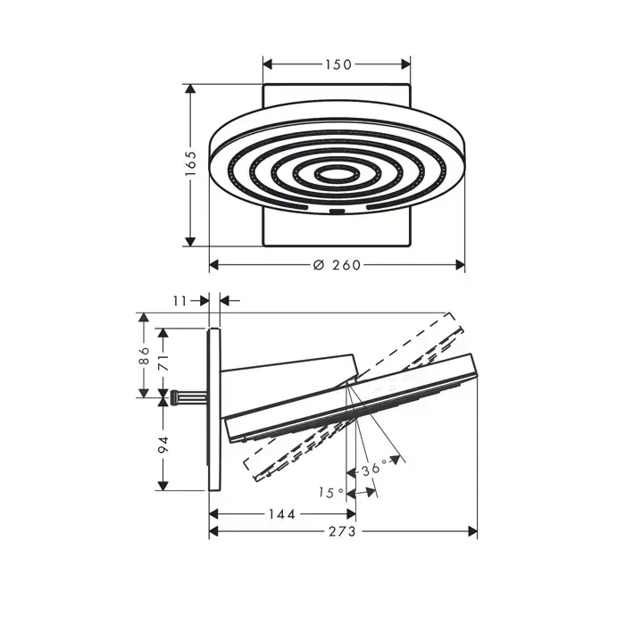 Hansgrohe Pulsify Верхний душ Ø260 мм., с настенным креплением, 2 режима, внешняя часть, цвет: черный матовый/графит