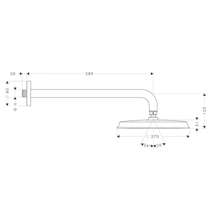 HG Raindance Classic Air Верхний душ 1jet (RainAir), d240мм, с настенным держателем 390 мм, шарнирное соединение, G1/2, цвет: хром