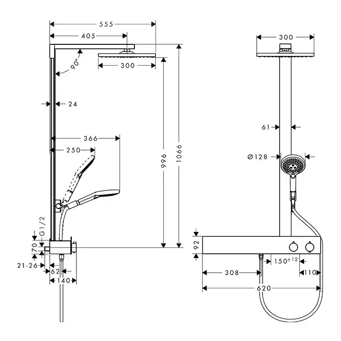 Hansgrohe Raindance E 300 Душевая система, с термостатом, штангой, ручным душем, верхним душем 30х30см, цвет: хром