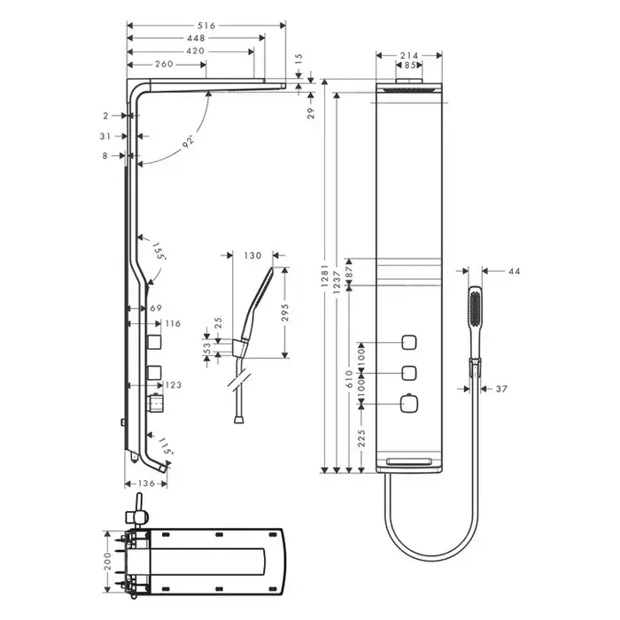 HG Raindance Lift Душевая панель с верхним душем + водопад, ручным душем и термостатом. цвет: хром