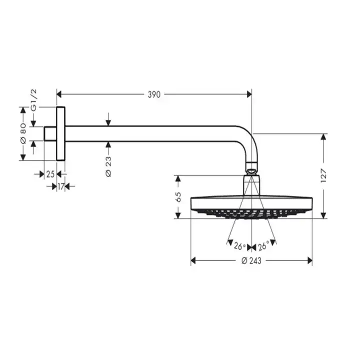 HG Raindance Select S Верхний душ d240мм, 2jet (RainAir, Rain), шарнирное соединение, G1/2, с настенным держателем 390мм, цвет: белый/хром