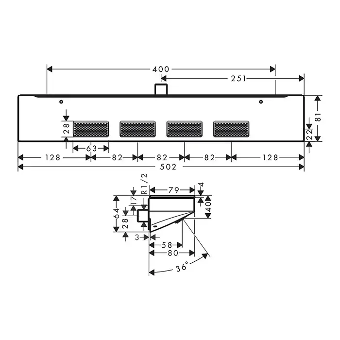 Hansgrohe Rainfinity Боковой/верхний душ 502х81мм с полкой, цвет: хром