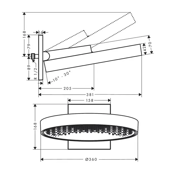 Hansgrohe Rainfinity Верхний душ, d=360мм, 1 jet, с настенным держателем, цвет: хром