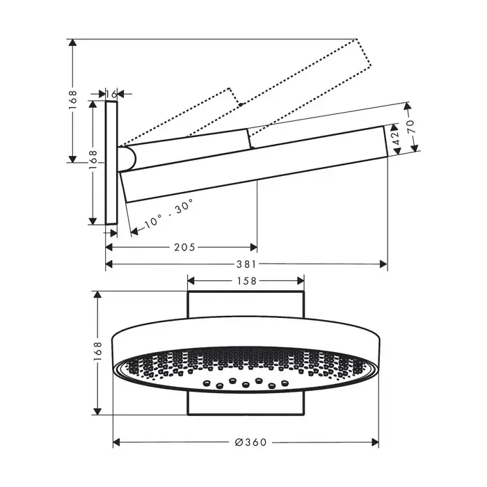 Hansgrohe Rainfinity Верхний душ, d=360мм, 1 jet, с настенным держателем, цвет: хром