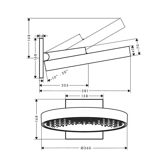 HG Rainfinity Верхний душ, d=360мм, 1 jet, с настенным держателем, цвет: хром