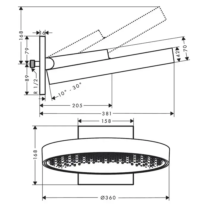 Hansgrohe Rainfinity Верхний душ, d=360мм, 1 jet, с настенным держателем, цвет: хром