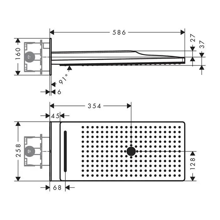 HG Rainmaker Select 580 Верхний душ 586x258мм, настенный, 3jet (Rain, Rainflow Waterfall, MonoRain), цвет: белый/хром