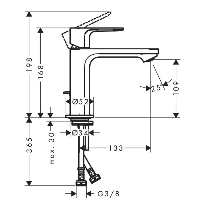 HG Rebris E Смеситель для раковины 110, с д/клапаном, цвет хром