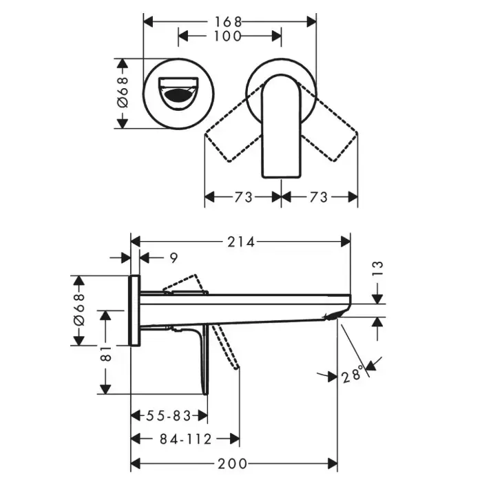 HG Rebris E Встраиваемый смеситель для раковины настенный с изливом 19,5 черный матовый