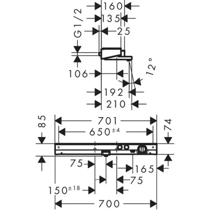HG ShowerTabletSelect 700 Термостат настенный для ванны на 2 источника, с изливом 192мм, с полочкой из безопасного стекла, цвет хром