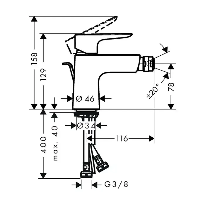 HG Talis E Смеситель для биде на 1 отверстие, с донным клапаном, излив 116мм, h78мм, цвет: черный матовый