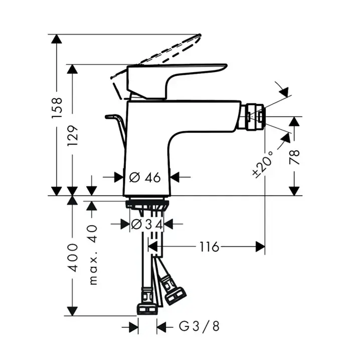 HG Talis E Смеситель для биде на 1 отверстие, с донным клапаном, излив 116мм, h78мм, цвет: хром