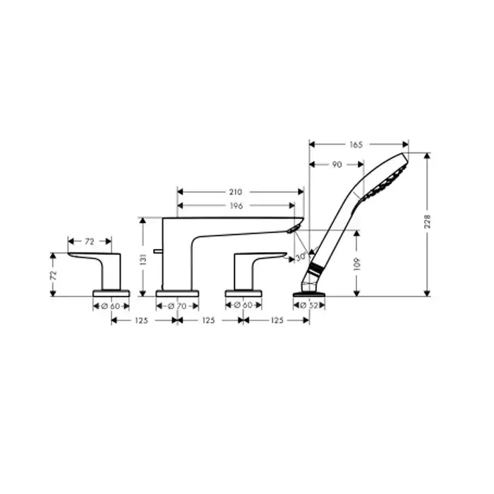HG Talis E Смеситель на борт ванны, на 4 отв, с ручным душем, излив 196мм, цвет: хром