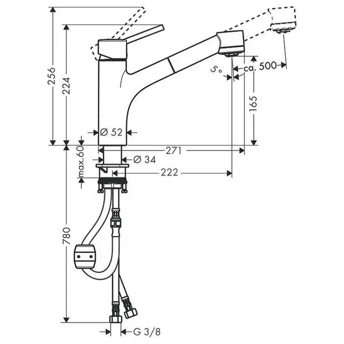 HG Talis S M52 Кухонный смеситель 170, на 1 отв., поворотный и вытяжной излив 222мм, h165мм 2jet, цвет: хром