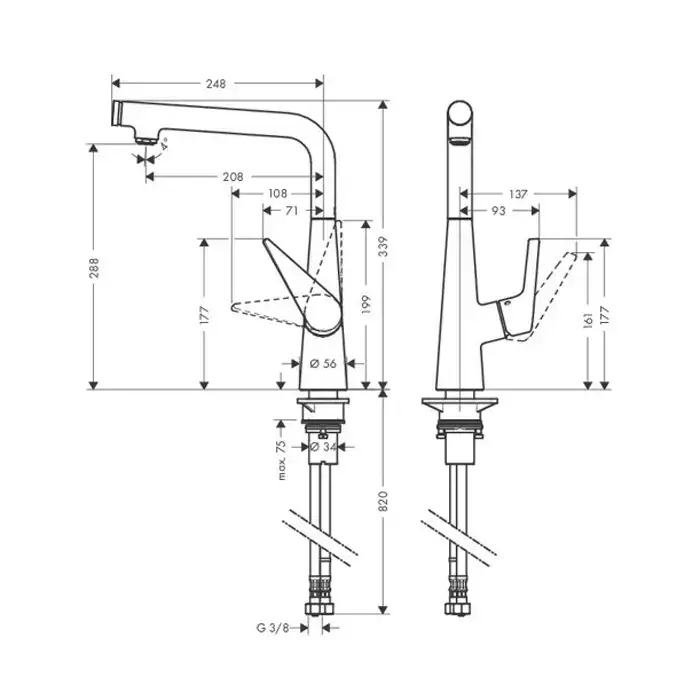 HG Talis Select M51 Смеситель для кухни, на 1 отв однорычажный, поворотный излив 248мм, 1jet, h280мм, кнопка вкл/выкл, цвет: хром